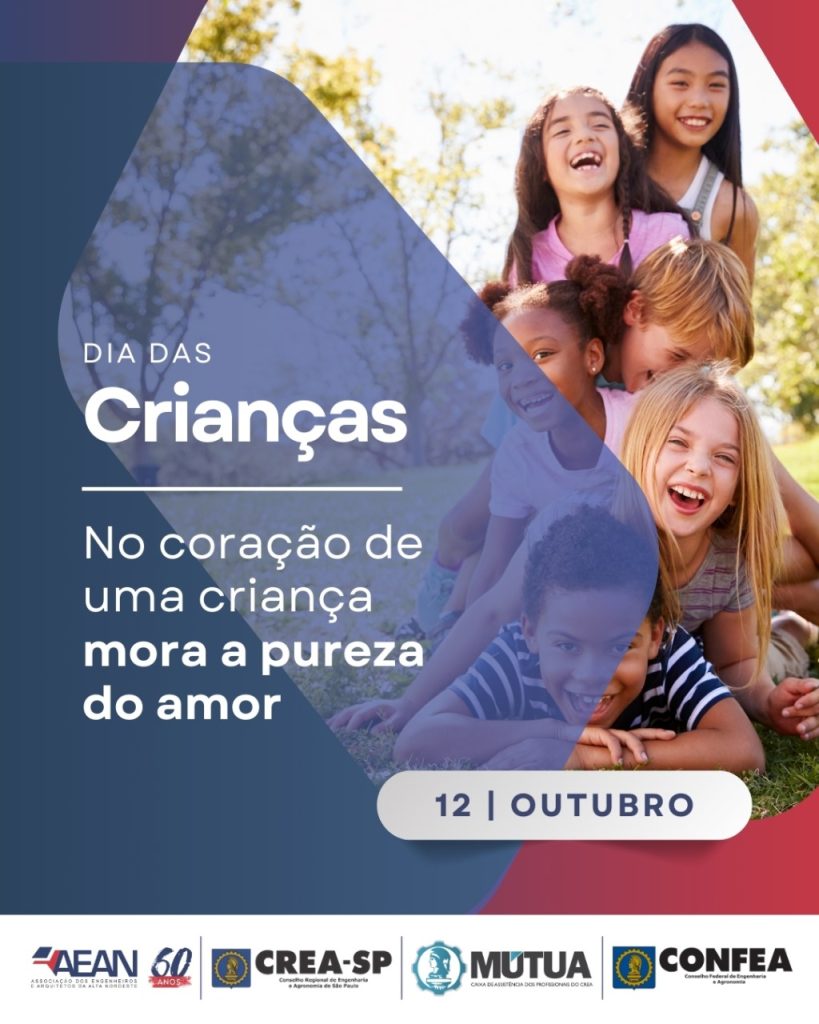 A AEAN (Associação dos Engenheiros e Arquitetos da Alta Noroeste) e o Crea-SP (Conselho Regional de Engenharia e Agronomia do Estado de São Paulo) parabenizam todas as crianças e os profissionais que contribuem para o seu desenvolvimento.