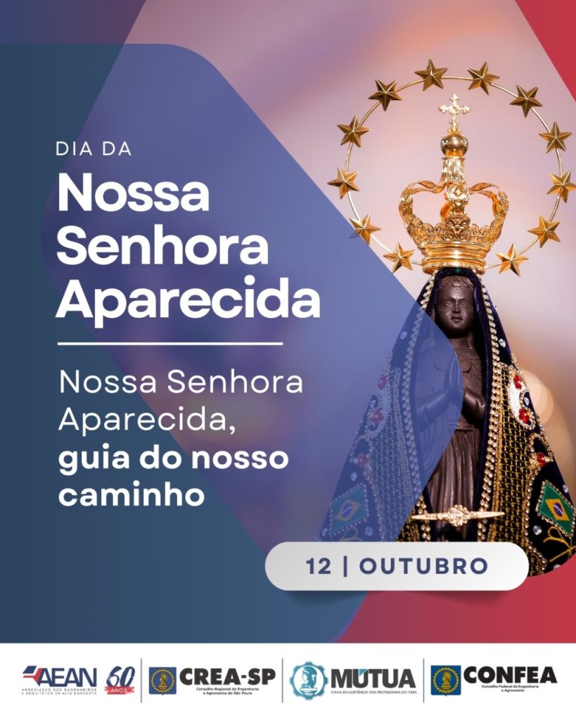 A AEAN (Associação dos Engenheiros e Arquitetos da Alta Noroeste) e o Crea-SP (Conselho Regional de Engenharia e Agronomia do Estado de São Paulo) parabenizam todos os profissionais e fiéis pela data. Comemora-se oficialmente em 12 de outubro.
