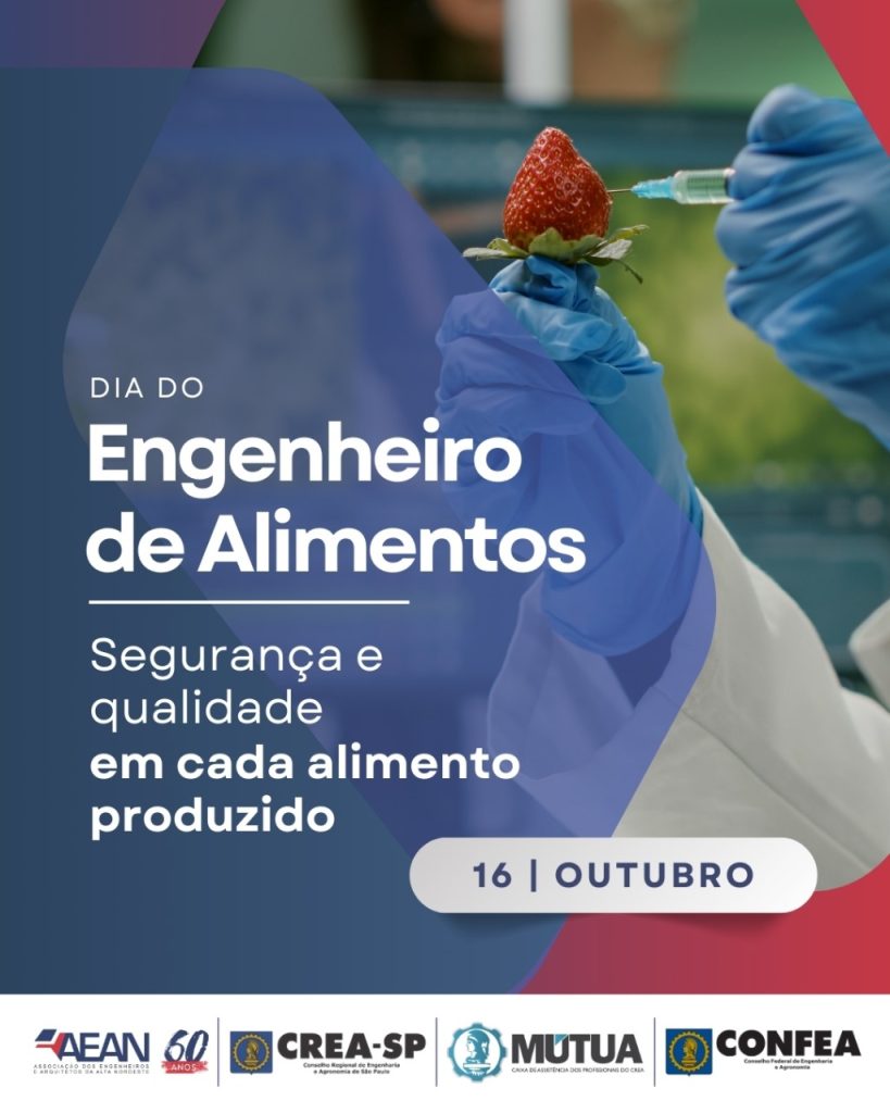 O Dia do Engenheiro de Alimentos, homenageia os profissionais que unem ciência, tecnologia e inovação para garantir alimentos de qualidade, seguros e acessÃveis à população.