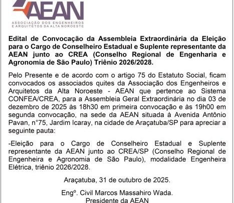 A AEAN publicou a convocação para a Assembleia Geral Extraordinária que elegerá o conselheiro estadual e o suplente que representarão[…..]