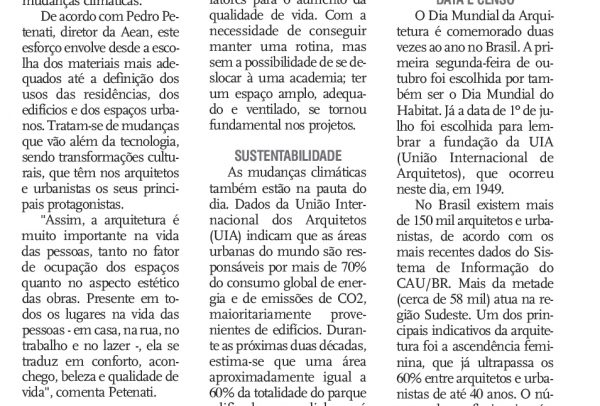 Reportagem traz opinião do arquiteto Pedro Petenati, diretor da AEAN, e foi veiculada no dia 05/10/2021.