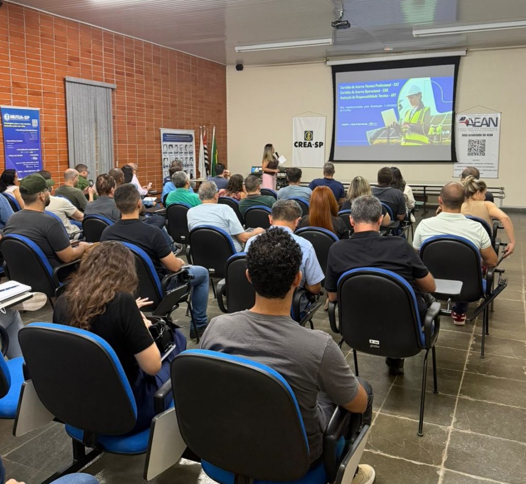 A palestra foi conduzida pela assistente administrativa Tathiana Lisboa e pelo chefe de equipe do Crea-SP, Ricardo Cury, que apresentaram conceitos fundamentais e orientações práticas para o dia a dia dos profissionais.