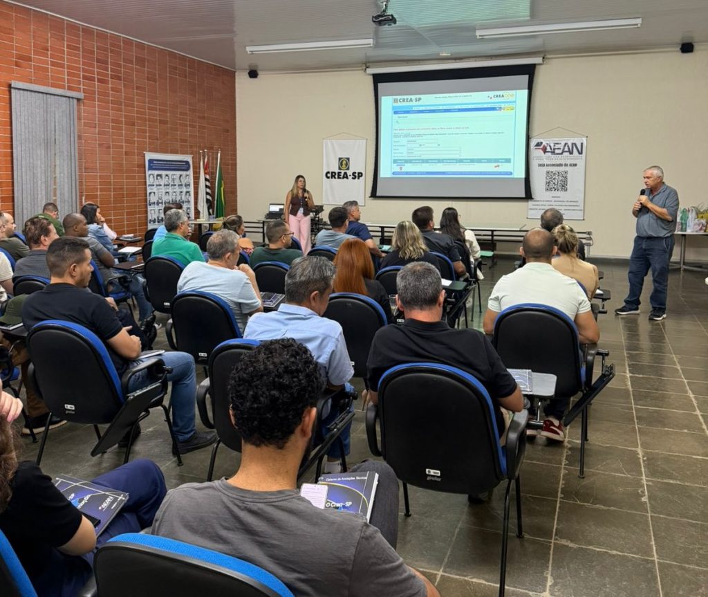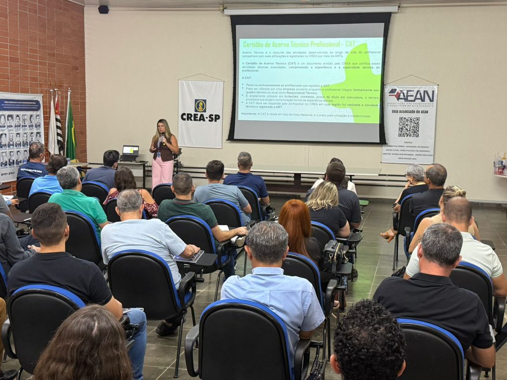 Profissionais da engenharia participaram na noite de quarta-feira (15), de uma palestra sobre acervo técnico promovida pela AEAN (Associação dos Engenheiros e Arquitetos da Alta Noroeste), com apoio do Crea-SP (Conselho Regional de Engenharia e Agronomia de São Paulo), em Araçatuba. O encontro teve como foco orientar sobre registros profissionais e esclarecer dúvidas sobre ART (Anotação de Responsabilidade Técnica), atestados e emissão de certidões.