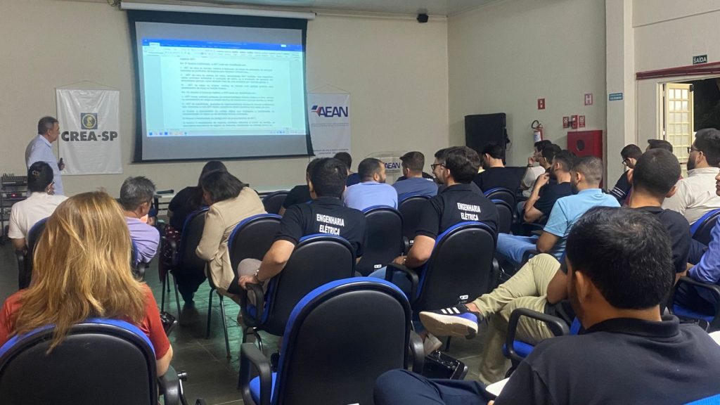 A Associação dos Engenheiros e Arquitetos da Alta Noroeste (AEAN) sediou, no dia 30 de outubro, a palestra Preenchimento de ART, ministrada pelo engenheiro eletricista e de segurança do trabalho Edivaldo Bis. O evento foi aberto ao público, mas teve foco especial nos alunos do 10º semestre dos cursos de Engenharia do Unisalesiano de Araçatuba, que em breve estarão ingressando no mercado de trabalho. A abertura ficou a cargo do chefe de equipe do conselho Regional de Engenharia e Agronomia do Estado de São Paulo (CREA-SP), Ricardo Cury.